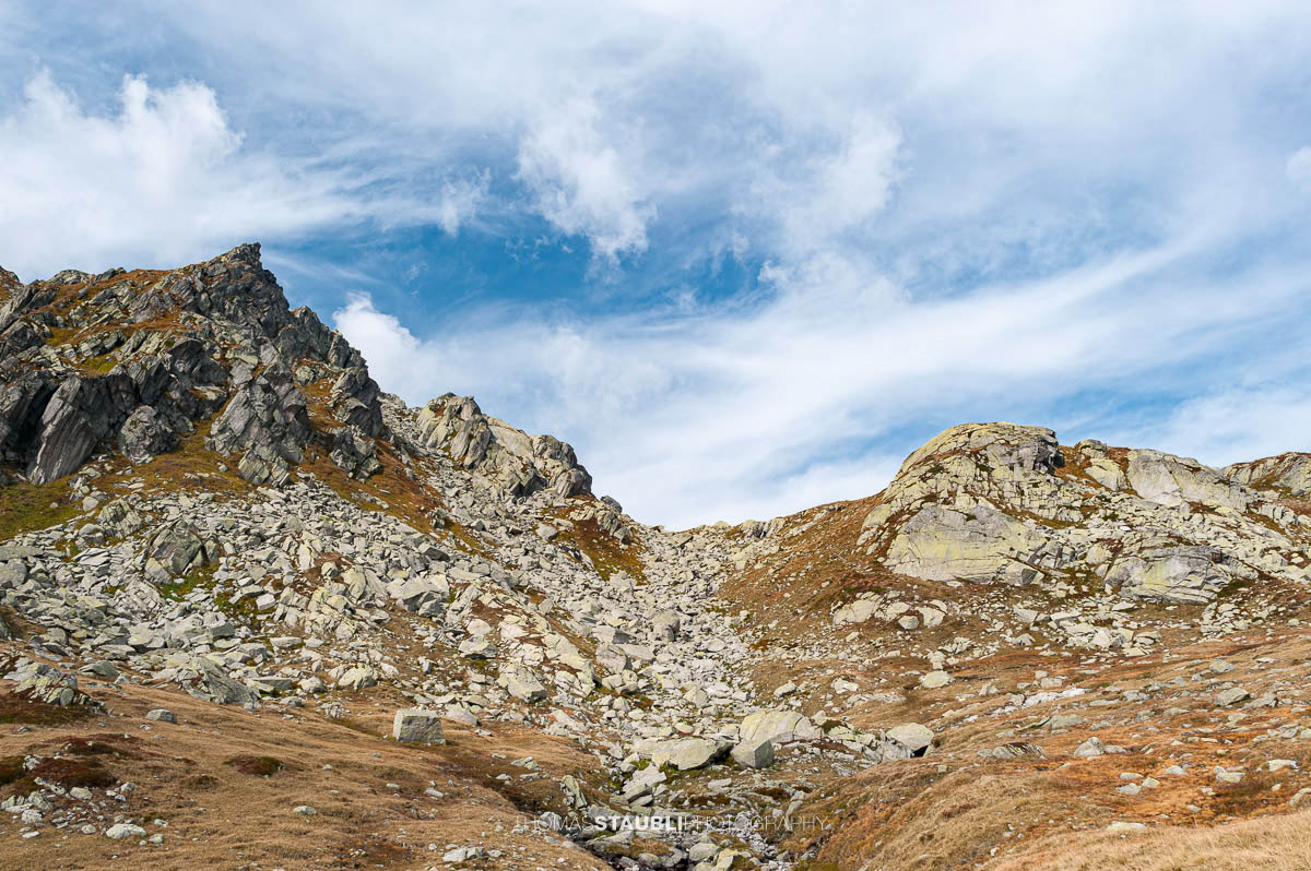 Der Gotthardpass bildet auf rund 2’100 Metern Höhe eine markante Schwelle zwischen der Zentralschweiz und dem Süden der Alpen. Seit Jahrtausenden prägt dieser Übergang die Landschaft und die Verbindung zwischen den Klimaräumen nördlich und südlich des Alpenhauptkamms. Die Umgebung des Passes ist von einer hochalpinen Szenerie aus Granit, Gneis und Moränenmaterial bestimmt, geformt durch eiszeitliche Vergletscherung und anhaltende Frostverwitterung. Vegetation tritt nur in geschützten Mulden und auf feinerem Substrat auf; alpine Gräser, Moose und Polsterpflanzen bestimmen das Bild.